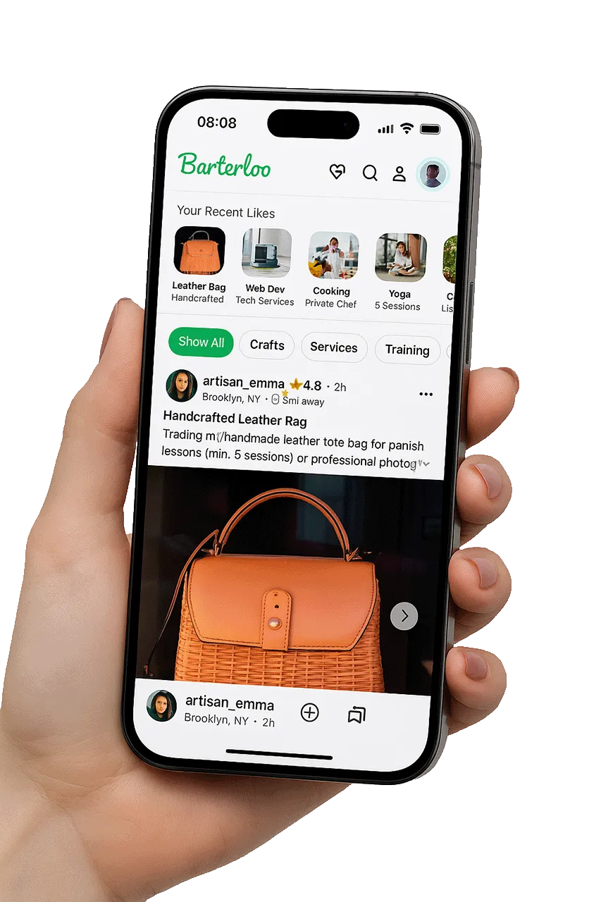 Small businesses have a real space to thrive here too — no drowning in mass-made noise. Barterloo is built for humans, not corporations. We get that businesses need to stay alive — so we're making space for flexible off-site cash transactions (for small biz only).